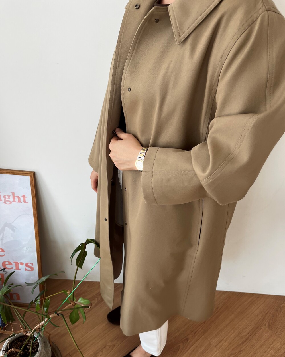 Helen Outer_Beige / Fabric by,made in Japan